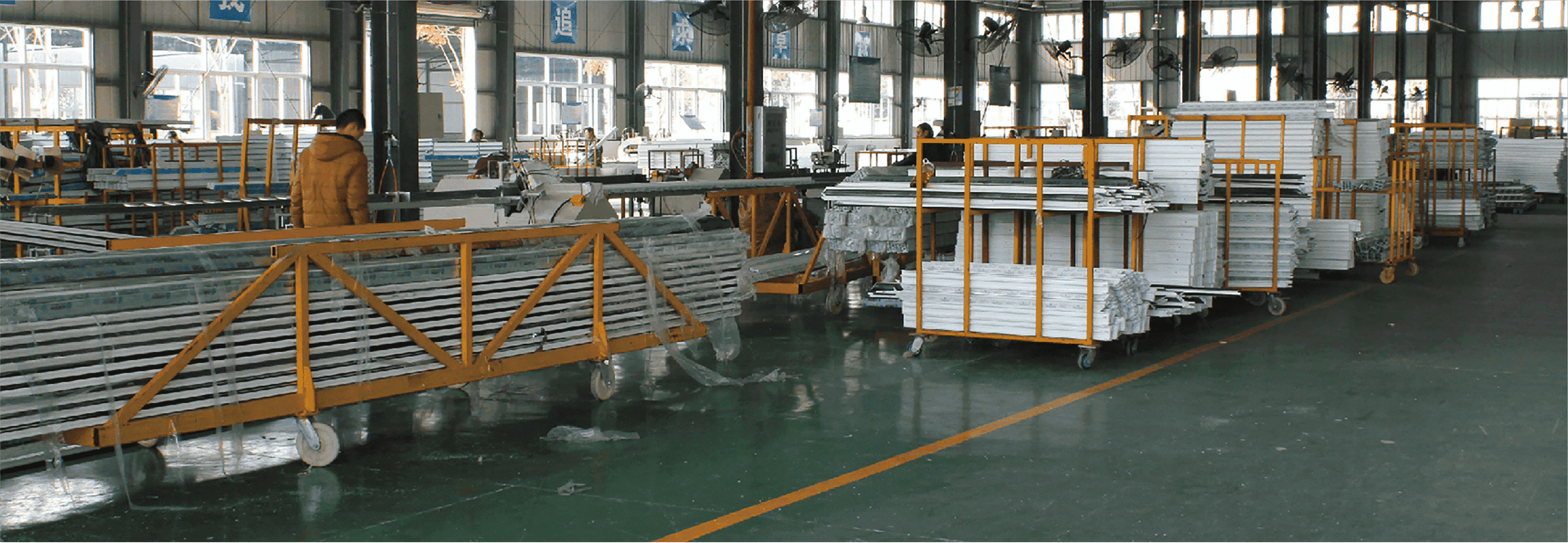 全套引进国内一线生产线设备,拥有自动化程度极高的锯切加工中心、无缝焊接中心、数控清角机等先进加工设备,保证了 塑钢门窗的优良品质。